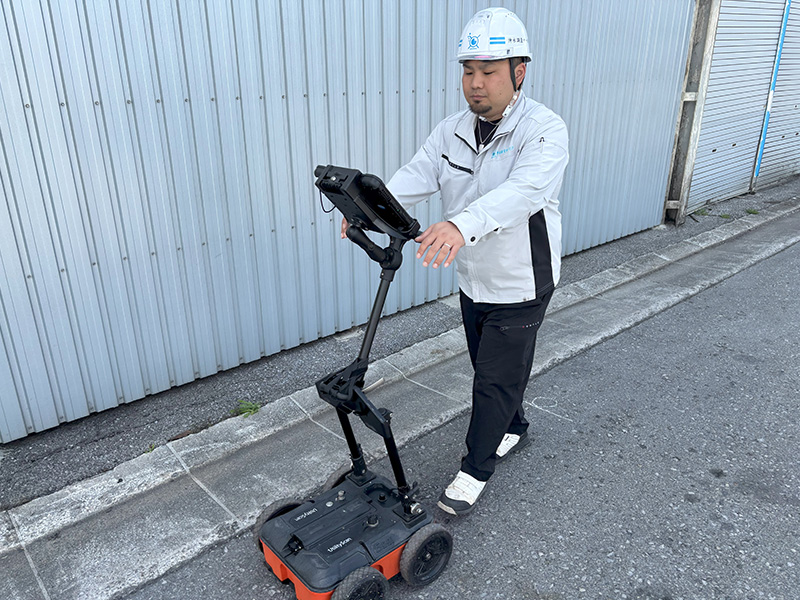 舗装面を破壊せず、地下に埋設された構造物・空洞・漏水箇所などを非破壊で探知。設計・施工前の地中確認や、老朽インフラの調査に活用されています。